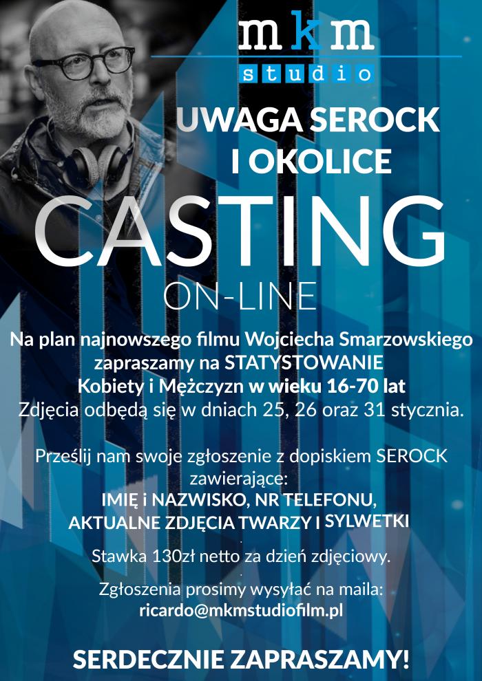 Zgłoszenia z dopiskiem SEROCK zawierające imię i nazwisko, aktualne zdjęcie twarzy i zdjęcie sylwetki oraz numer telefonu prosimy przesyłać na maila: ricardo@mkmstudiofilm.pl