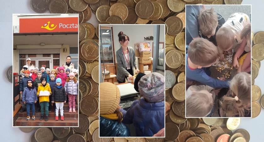 Zbiórka w miejskiej piątce, w ramach akcji Góra Grosza, dobiegła końca. Po zebraniu drobnych, przedszkolaki wraz z ciociami, osobiście wybrały się na pocztę w Pułtusku, aby wysłać zgromadzone środki do organizatorów zbiórki - Towarzystwa Nowy Dom. Reprezentami przedszkola były dzieci z grupy Pszczółki. Oprócz nauki altruizmu, poprzez udział w akcji charytatywnej, dzieciaki miały także okazję do poznania pracy na poczcie.