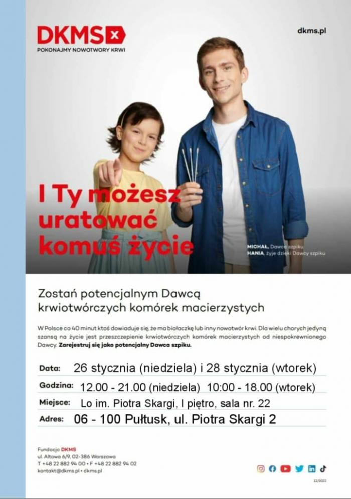 W prosty sposób tłumaczy to młodzież z Liceum Ogólnokształcące im. Piotra Skargi w Pułtusku. Przyłącz się i Ty! Wolontariusze LO wraz z Fundacja DKMS organizują akcję rejestracji potencjalnych Dawców Szpiku już po raz siódmy. #KOMORKOMANIA