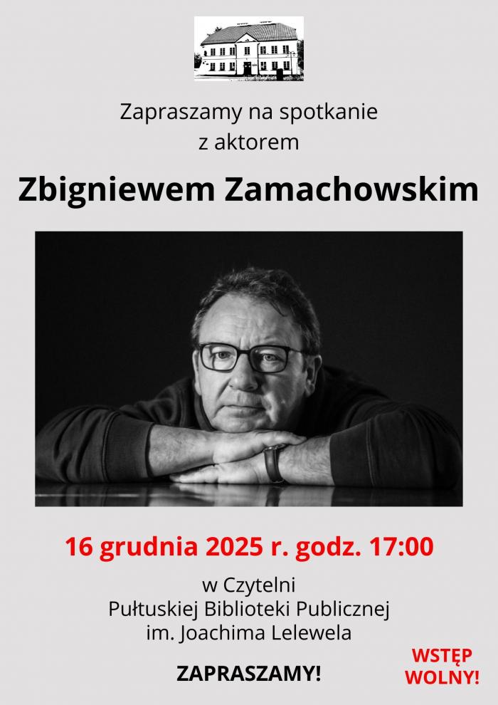 Pułtuska Biblioteka Publiczna im. Joachima Lelewela zaprasza na wyjątkowe spotkanie z jednym z najbardziej cenionych polskich aktorów filmowych i teatralnych – Zbigniewem Zamachowskim.