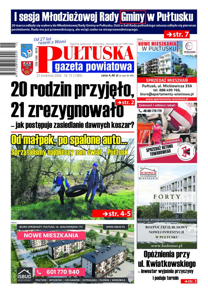 21 kwietnia w sklepach kupicie 15. w tym roku numer Pułtuskiej Gazety Powiatowej. A w najnowszym wydaniu przeczytacie…