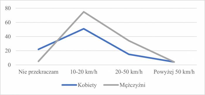 Wykres - Płeć a przekraczanie dozwolonej prędkości. Źródło: ITS
