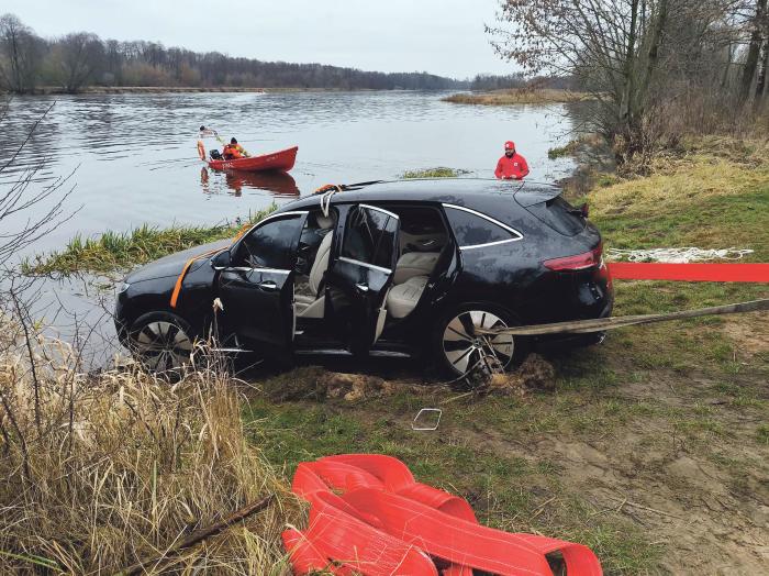 Do niecodziennego zdarzenia doszło w sobotnie popołudnie - samochód osobowy wpadł do rzeki.