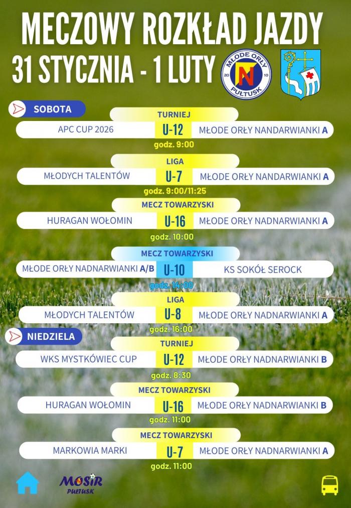 9:00 – Turniej (APC Cup 2026): U-12 Młode Orły Nadnarwianki A