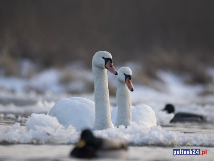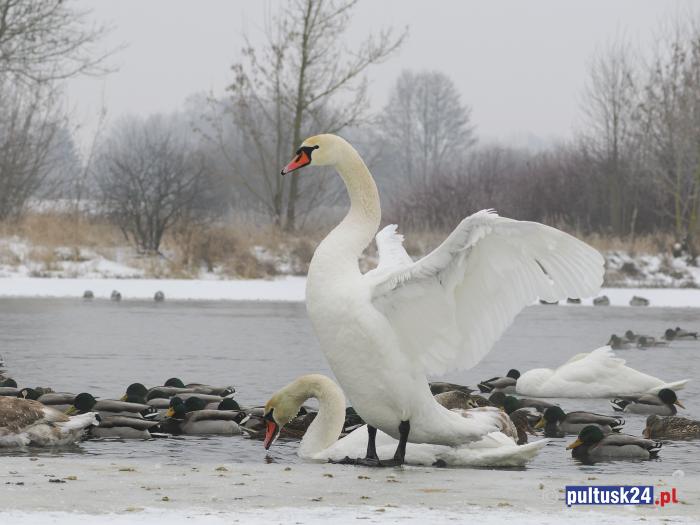 Łabędź niemy jest największym przedstawicielem polskiej awifauny. Dorosłe samce osiągają imponujące rozmiary – zwykle ważą od kilku do kilkunastu kilogramów, a zważony rekordzista miał aż 22,5 kg. Gatunek ten zimuje tradycyjnie nad Morzem Bałtyckim, Morzem Północnym oraz w południowej Europie, jednak w ostatnich latach wiele osobników zrezygnowało z dalekich migracji. Coraz częściej łabędzie zimują nad niezamarzającymi zbiornikami wodnymi, również w miastach, gdzie łatwiej znaleźć pożywienie. Tak dzieje się w Pułtusku.