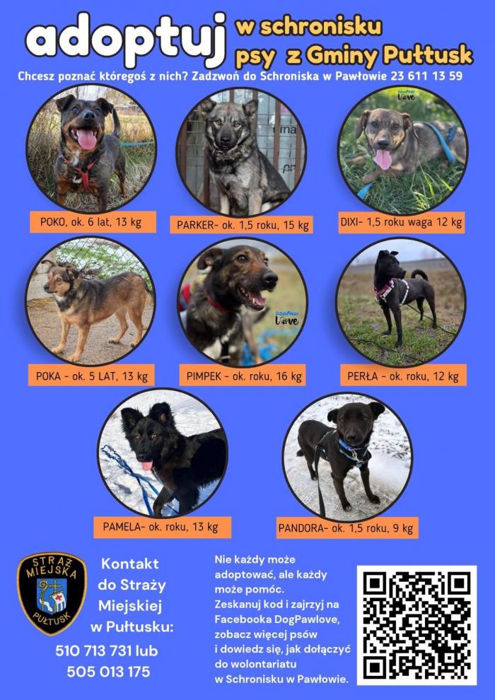 Większość psów znalezionych na terenie naszej gminy trafia w pierwszej kolejności do Tymczasowego Miejsca Przetrzymywania Zwierząt w Pułtusku. To tutaj „zegar tyka” najgłośniej. Jeśli w krótkim czasie nie znajdzie się właściciel lub nowy opiekun, zwierzęta są transportowane do schronisk – m.in. do Schroniska w Pawłowie. Adopcja bezpośrednio z pułtuskiej przechowalni to dla tych zwierząt ogromna szansa. Pozwala im uniknąć stresu związanego z transportem i życiem w dużym, przepełnionym schronisku.