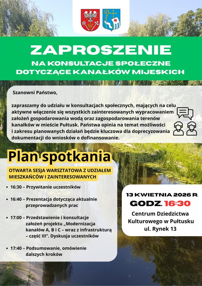 Kanały pułtuskie śmiało można nazwać naszym krajobrazowym skarbem. Po wielu latach miasto pozyskało duże środki na przywrócenie im blasku. Niebawem prace wejdą w etap ważny dla dalszych losów projektu. Wpływ na wygląd kanałków mogą mieć mieszkańcy – miasto zaprasza na konsultacje społeczne.