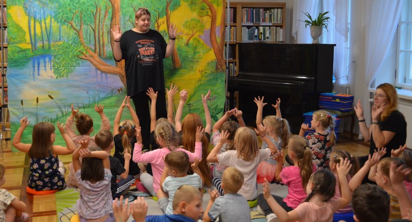 Dzieci poznały historię biedronki Aldonki, która zgubiła się w lesie i nie mogła znaleźć drogi do domu. Na pomoc przybył jej skrzat Jeżynek, który nauczył ją podstawowych zasad bezpieczeństwa i pomógł odnaleźć mamę. Opowieść zachwyciła wszystkie zgromadzone w Czytelni dzieci, które z wielkim entuzjazmem brały udział w przedstawieniu.