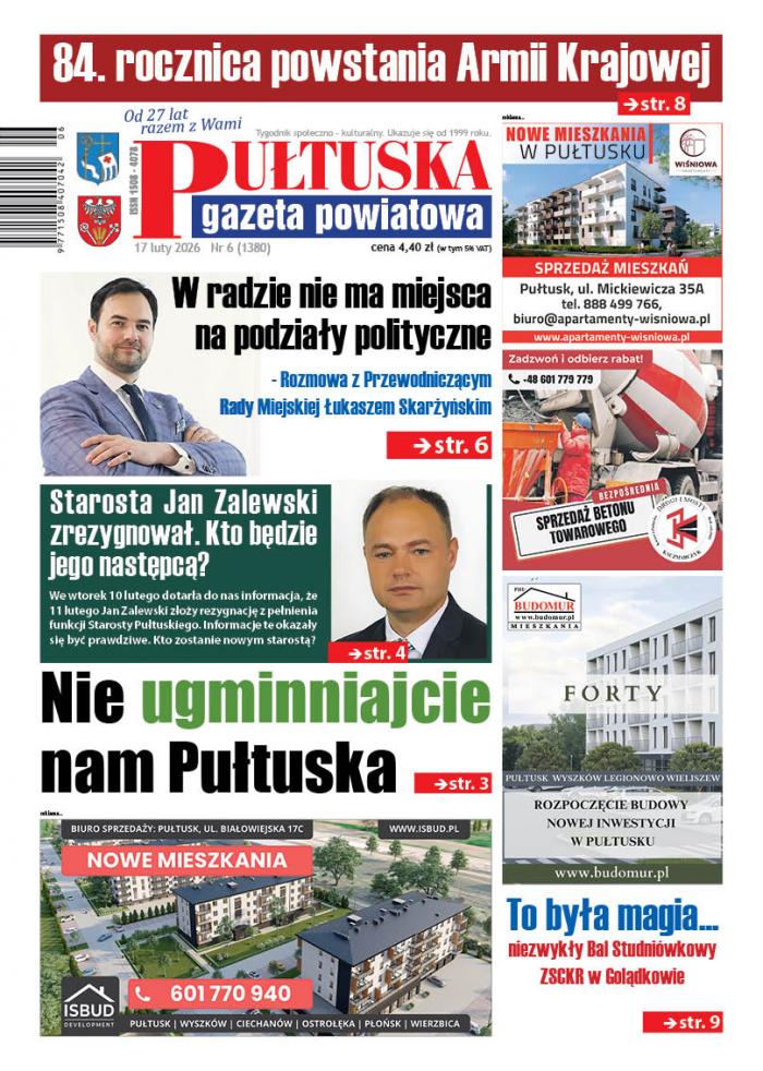 6 numer Pułtuskiej Gazety Powiatowej w sprzedaży od wtorku 17 lutego, a w nim mi.n.:
