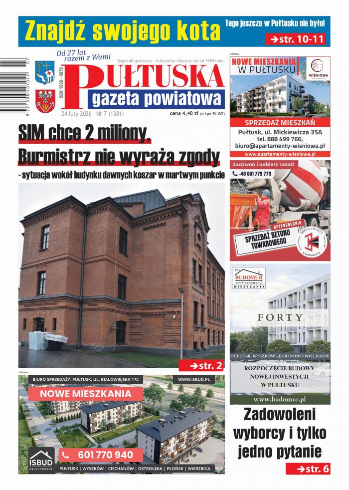 W 7 numerze Pułtuskiej Gazety Powiqatowej, dostępnej w sprzedaży od wtorku 24 lutego: