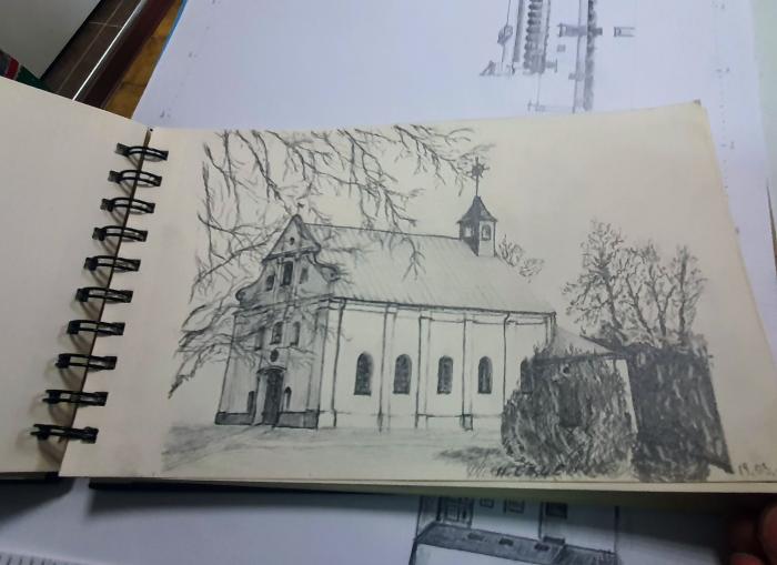 Kościółek w Kacicach też narysował Pan z miłości do... Kacic. Chodził Pan kilka dni i go obserwował...