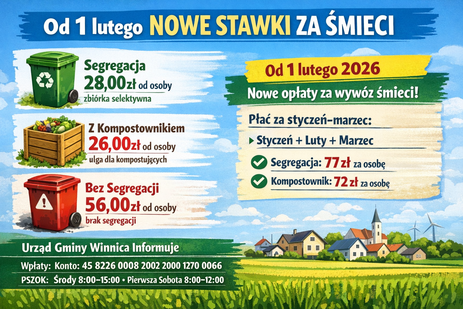 Od 1 lutego 2026 roku zmieniają się stawki opłat za gospodarowanie odpadami komunalnymi – informuje Urząd Gminy Winnica. Oto najważniejsze informacje.