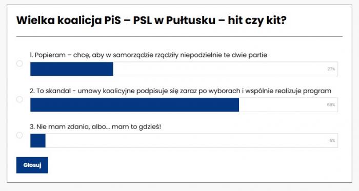 Zakończyło się głosowanie w sondzie dotyczącej wielkiej koalicji między Polskim Stronnictwem Ludowym a Prawem i Sprawiedliwością w samorządzie miejskim i powiatowym.