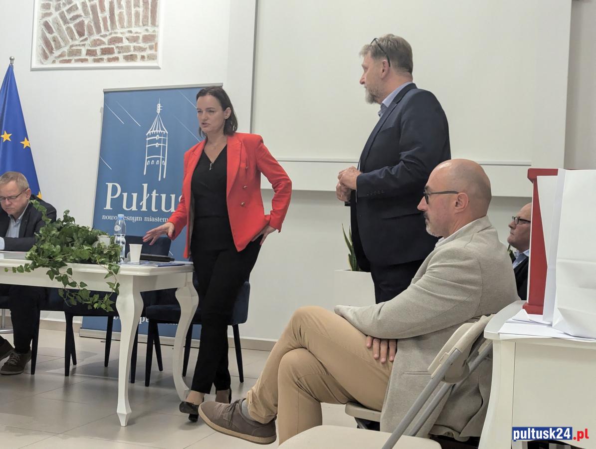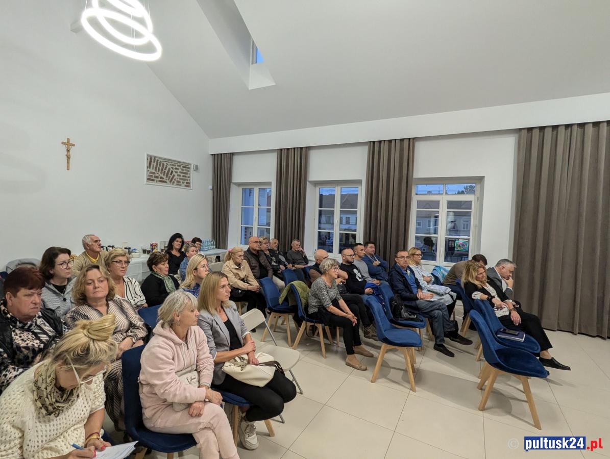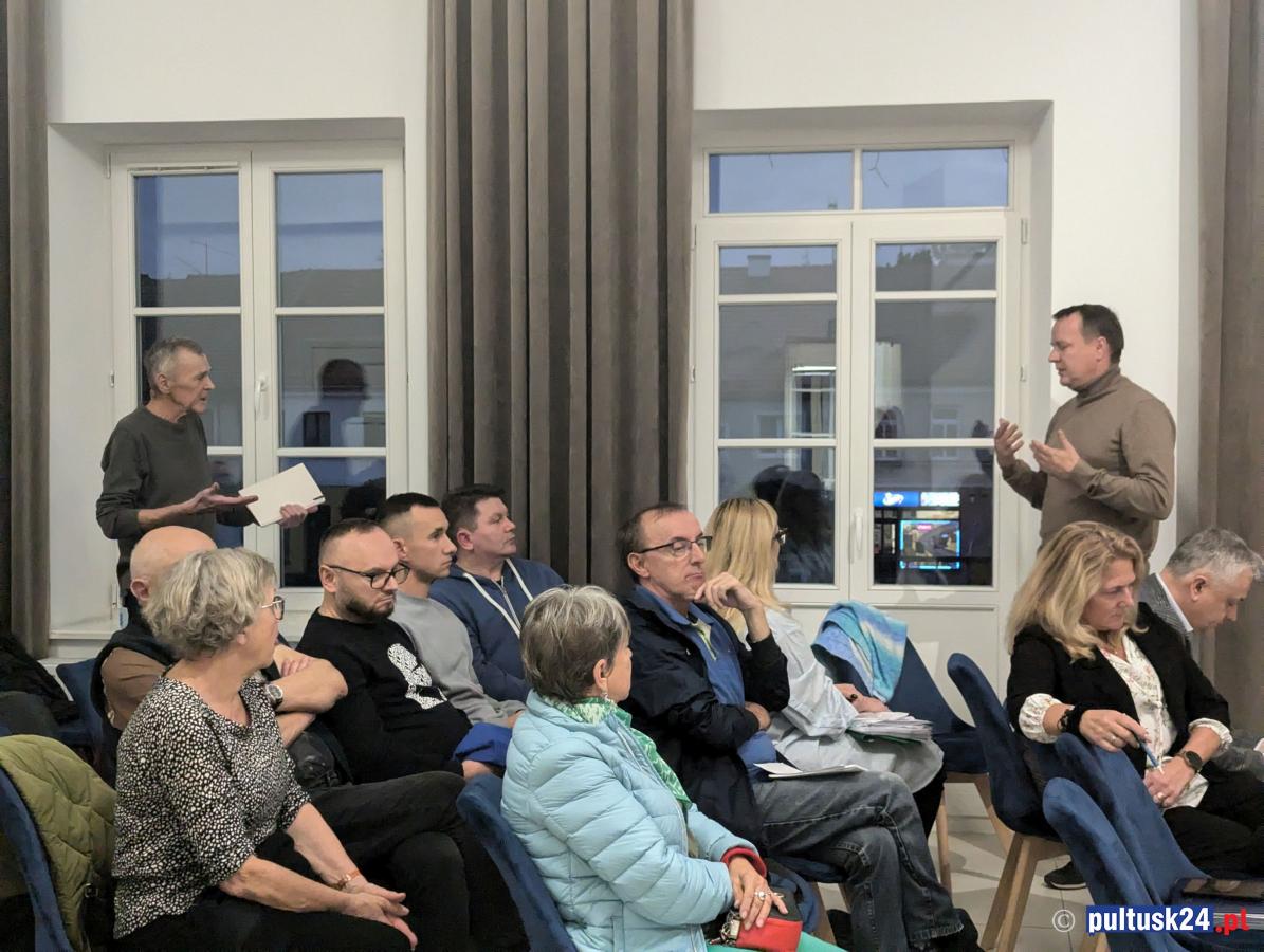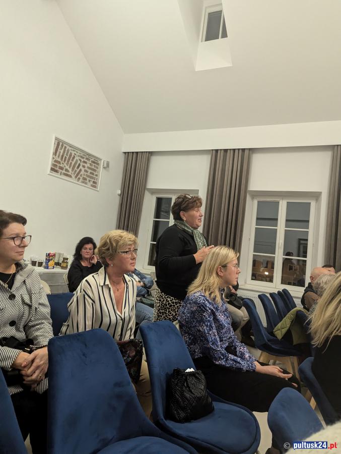 Galeria zdjęć z publicznego spotkania w Pułtusku, gdzie mieszkańcy oraz prezesi spółek miejskich dyskutowali o kwestiach mieszkaniowych i inwestycjach. Marzena Cendrowska omawiała przyszłoroczny budżet i zapewnienia wsparcia dla mieszkańców dotkniętych trudnościami. Obecni także podnosili problemy infrastrukturalne, które wymagają natychmiastowej uwagi. Pełne zaangażowanie i determinacja w rozwiązywaniu problemów miasta.