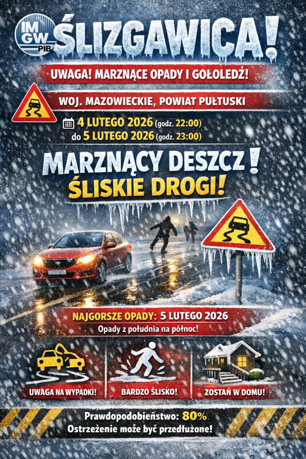 UWAGA: Marznące opady w powiecie pułtuskim!