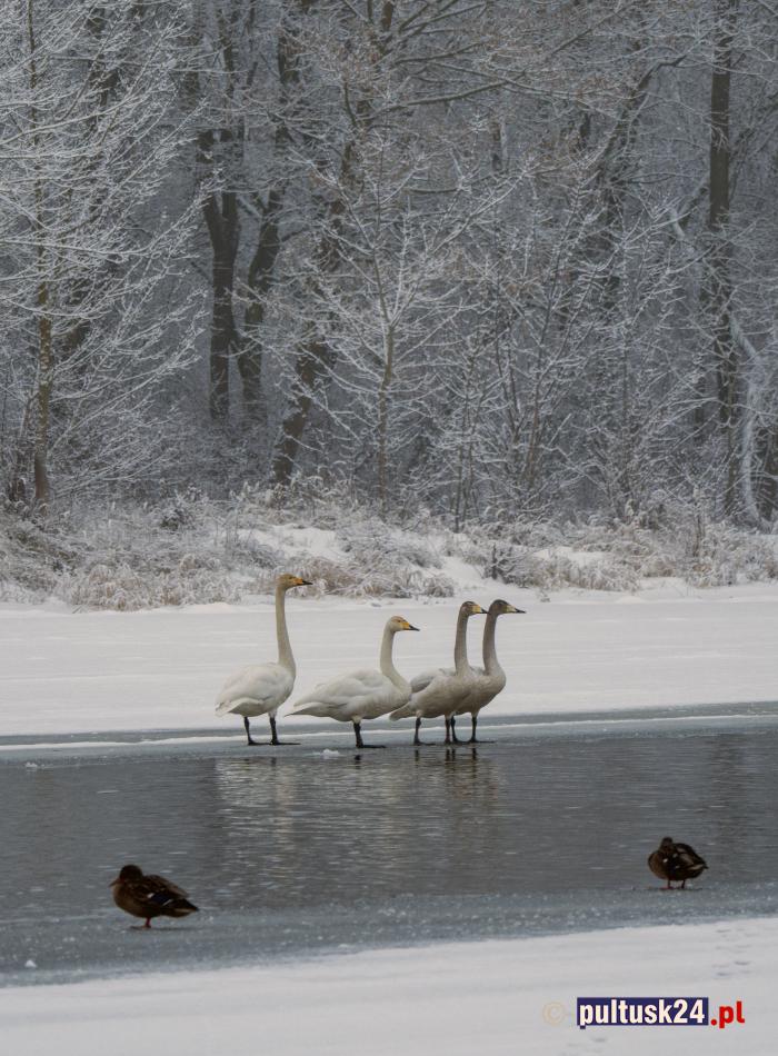 W okolicach Pułtuska, nad Narwią i w Puszczy Białej, obserwujemy od kilku lat udane (choć nie co roku) lęgi łabędzia krzykliwego. W zimę ptaki można spotkać odpoczywające na rzece. Tak było w tym roku – w styczniu kilka razy łabędzie krzykliwe lądowały i odpoczywały na niezamarzniętym fragmencie rzeki.